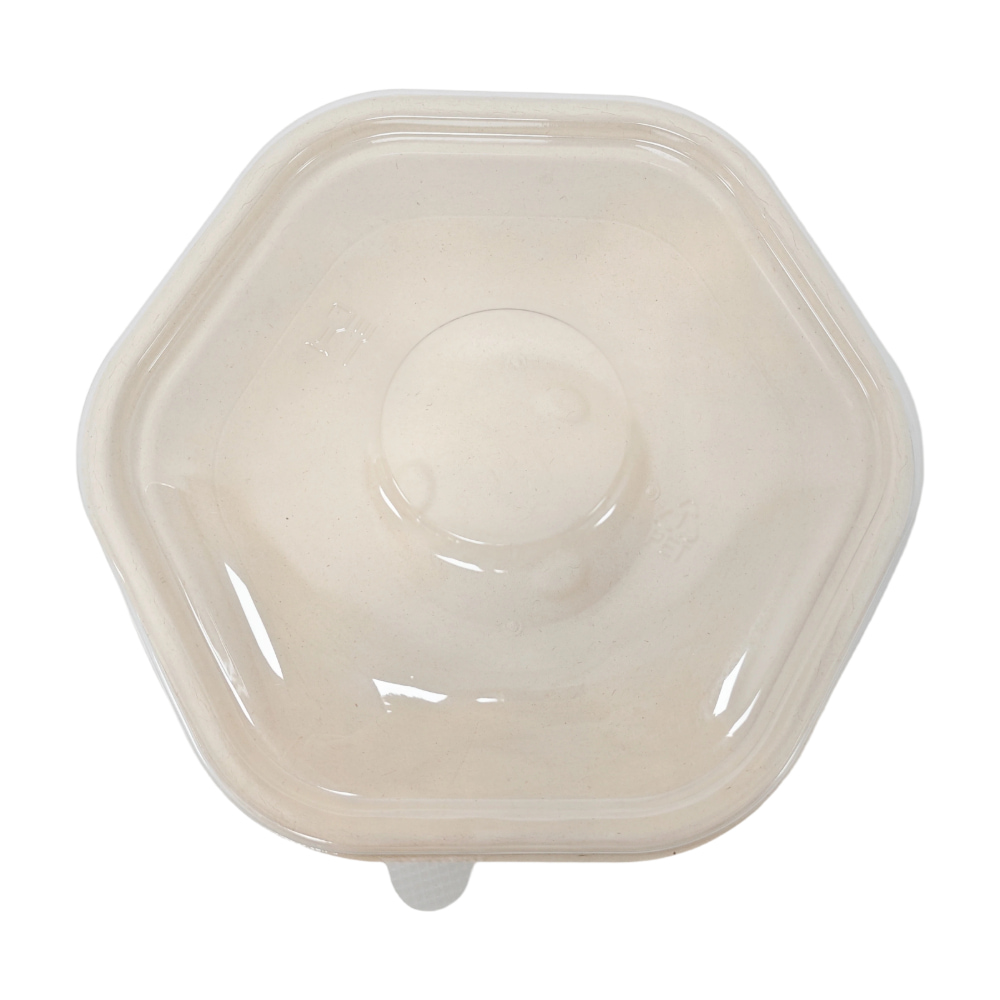 750ML Sugarcane Bagasse Hexagonal Bowl With PET Lids Disposable Clear Plastic Lids