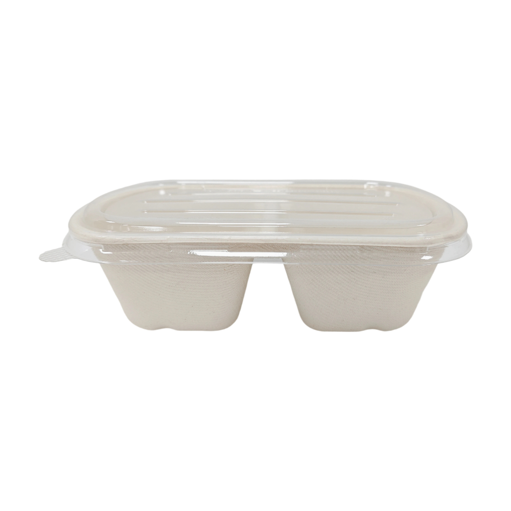 Clear Plastic PET Lids 700ML Sugarcane Bagasse Pulp Single/Double Compartment Packing Box With Lids