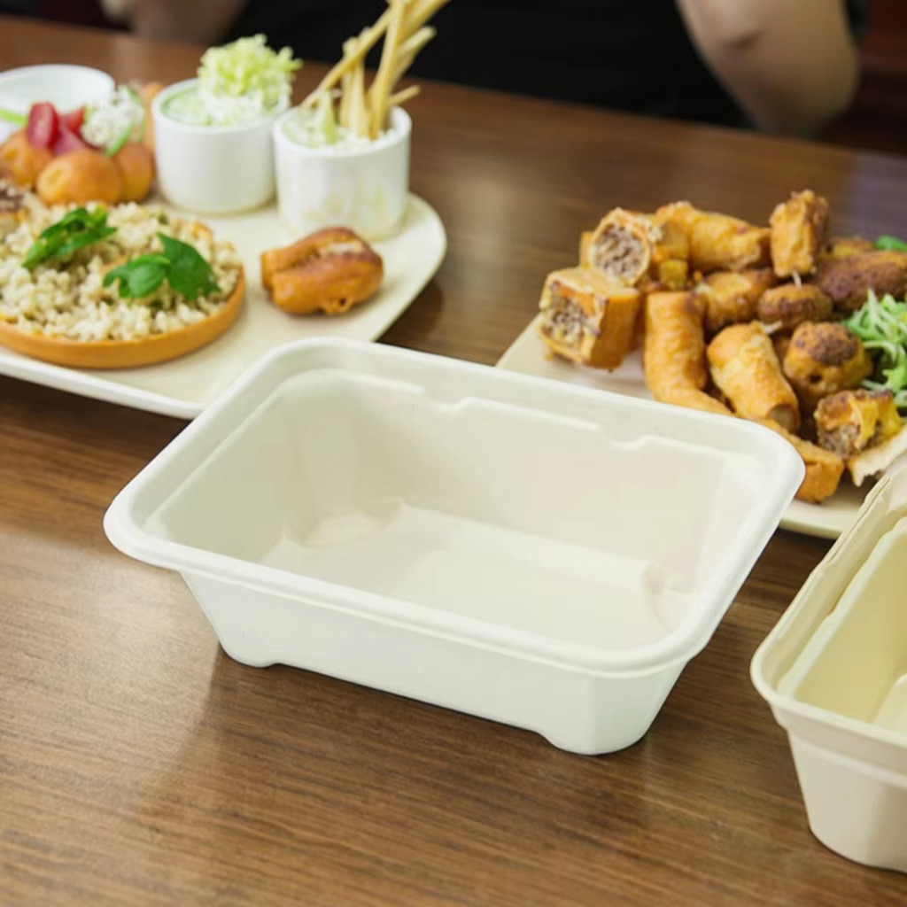 Fibra de caña de azúcar compostable (650 ml) Caja de embalaje Vajilla de bagazo biodegradable personalizada