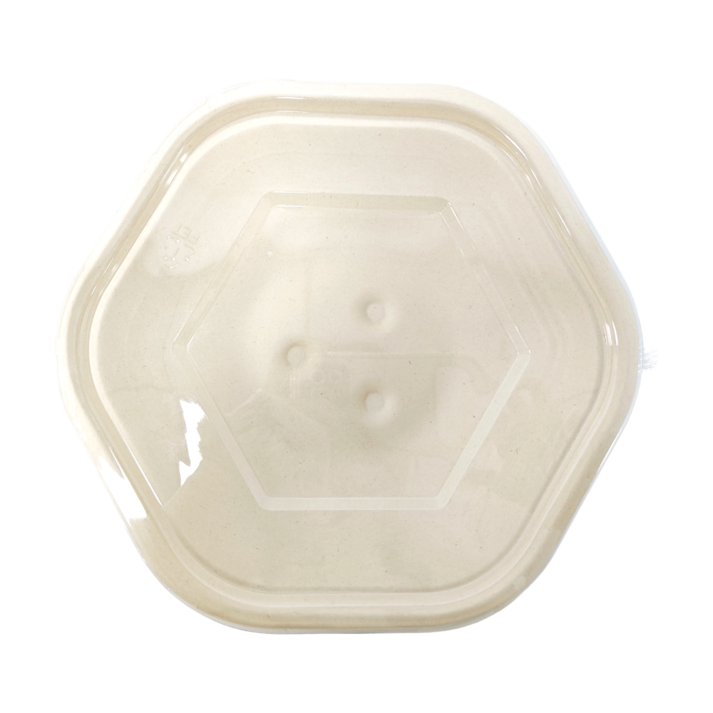 Disposable 1000/1300/1600ML Sugarcane Bagasse Hexagonal Bowl With Plastic Lids Recyclable PET lids