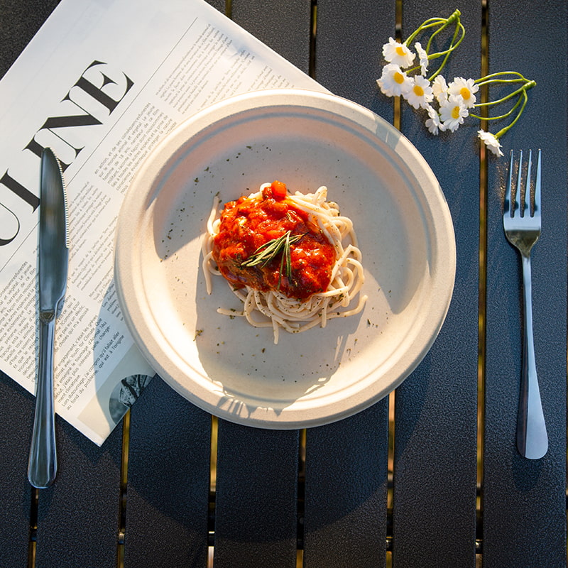 6gVajilla ecológica de bagazo de caña de azúcar: sostenible, segura y elegante.Elaborada con pulpa de caña de azúcar 100 % natural (bagazo), nuestra vajilla desechable reemplaza los plásticos de un solo uso con una innovación positiva para el planeta. Es de calidad alimentaria, resistente al agua y al aceite: perfecta para comidas frías o calientes, sobras o paquetes para llevar.