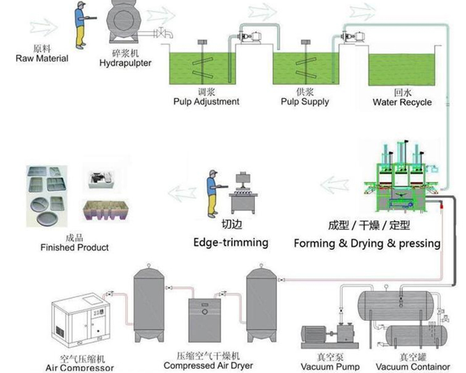 Next comes the forming and shaping stage , where the pulp is poured into precision molds. The water is absorbed through the mold’s tiny pores, leaving behind a semi-solid shape. High-temperature hot pressing then solidifies the structure, giving each piece its smooth texture and firm strength. After trimming and inspection , only flawless products move to the next step. This careful quality control guarantees that every product meets international food packaging standards while maintaining the integrity of compostable food packaging.