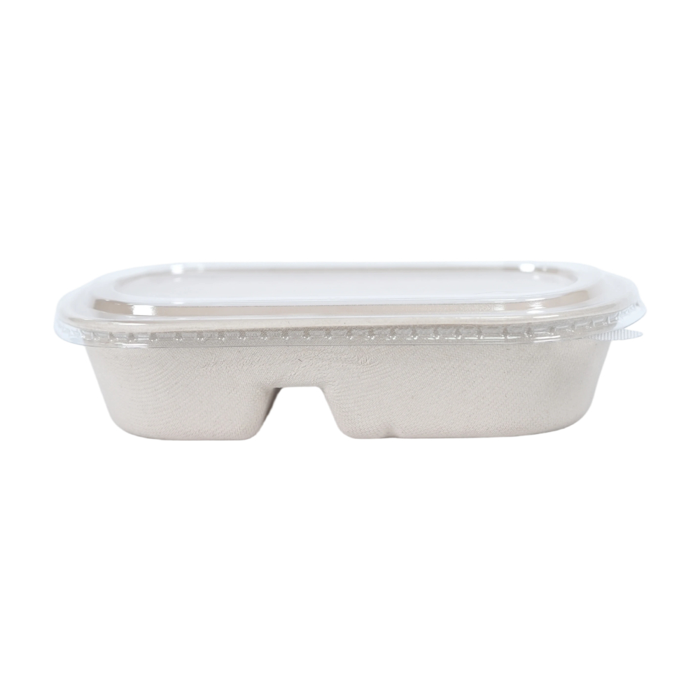 Smooth-surface PET Plastic Lid For Sugarcane Bagasse 850/1000ml Double Compartment Packing Box
